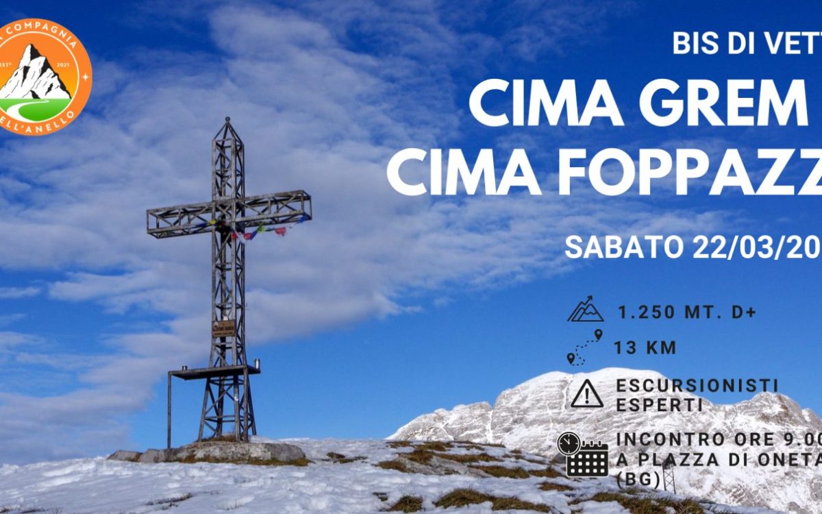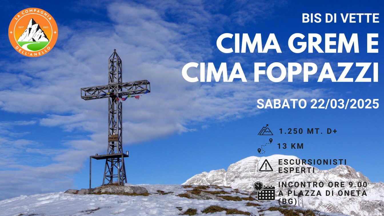 E quale modo migliore per dare il benvenuto alla nuova stagione se non con una bellissima escursione alla Cima Grem e alla Cima Foppazzi? Sabato 22 marzo partiremo da Plazza di Oneta per scoprire un itinerario inedito, diverso da quelli che abbiamo già percorso in passato.