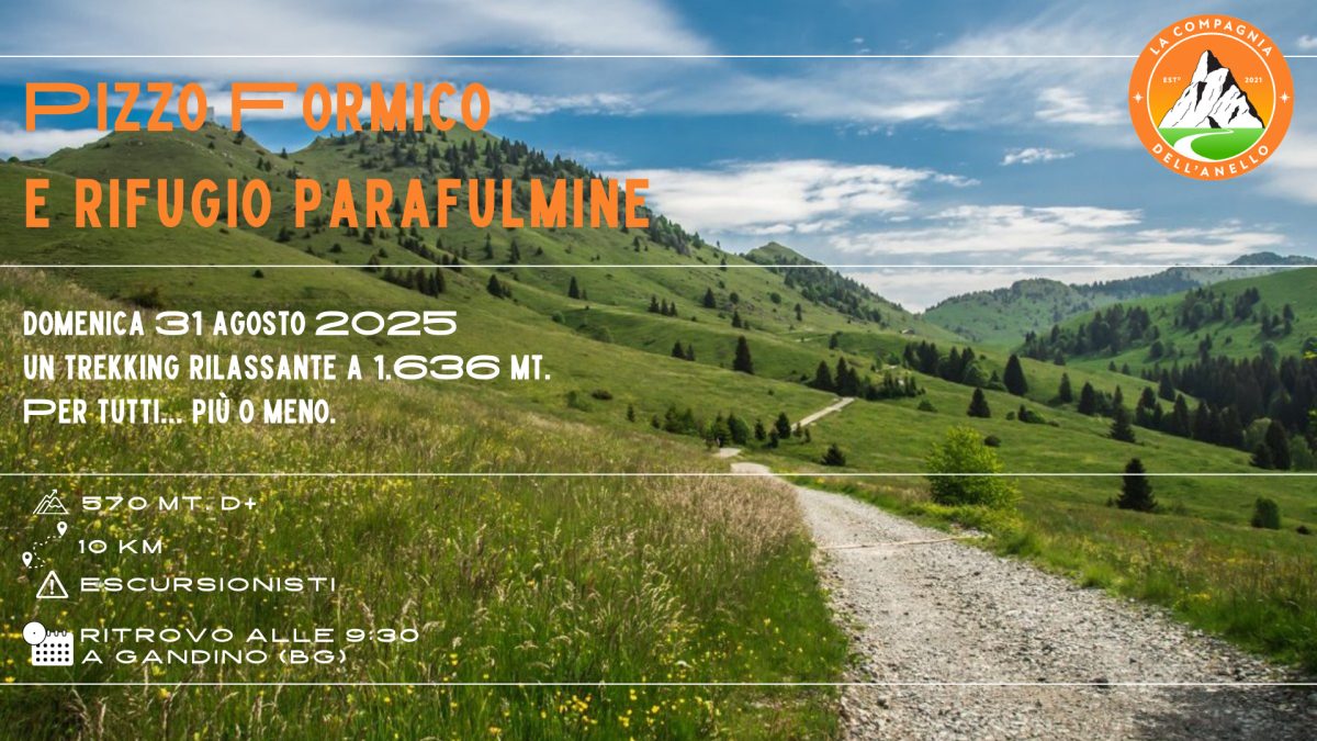 Domenica 31 agosto ci aspetta un abbraccio dolce e deciso della montagna: il Pizzo Formico e il Rifugio Parafulmine. Di solito “allunghiamo un po’ il brodo”, ma stavolta torniamo su questa classica escursione della bergamasca in versione light: un anello di 10 km con 570 m di dislivello, giusto per sentirsi vivi senza strapazzarsi troppo.